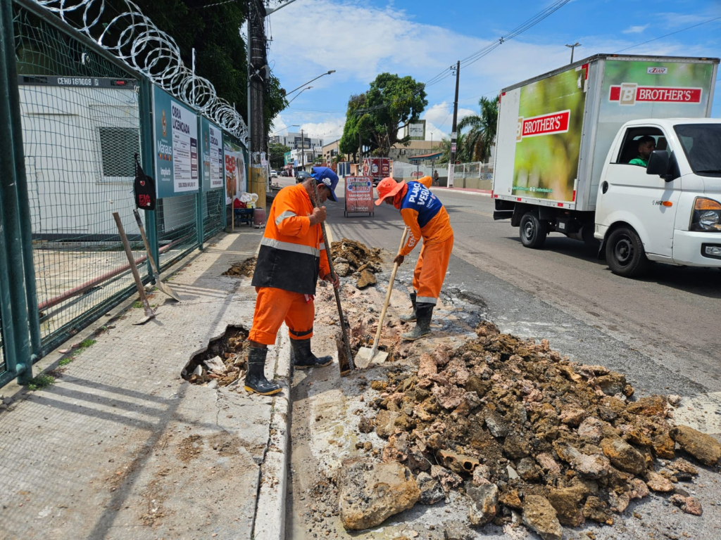 A Prefeitura de Manaus atuou, nesta terça-feira, 2/12, na recuperação de um trecho da rede de drenagem profunda da avenida