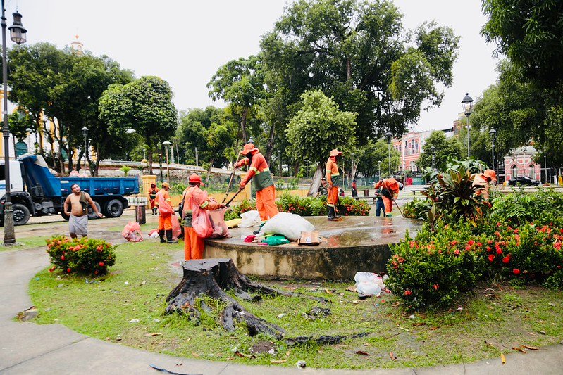 Prefeitura de Manaus alerta para retrabalho de limpeza na praça da Matriz após aumento do descarte irregular de lixo